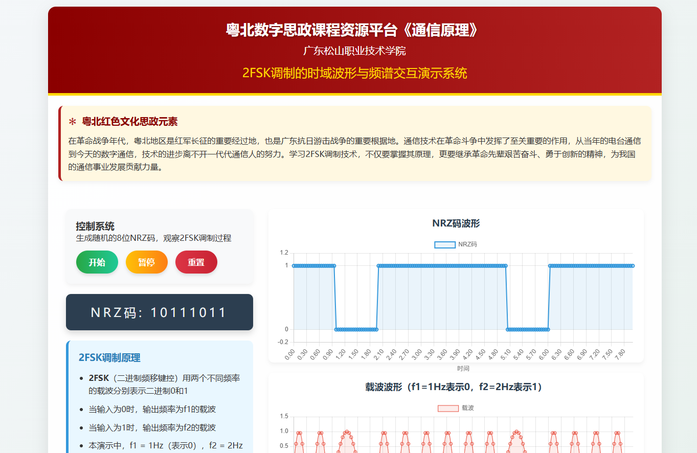 56、2FSK 调制在粤北红色应急通信中的时域波形与频谱交互演示系统