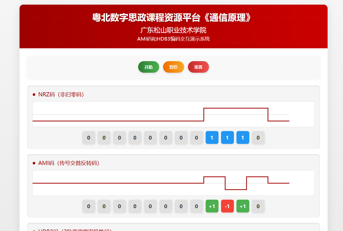 53、AMI 码和 HDB3 编码在粤北红色电报中的交互演示系统