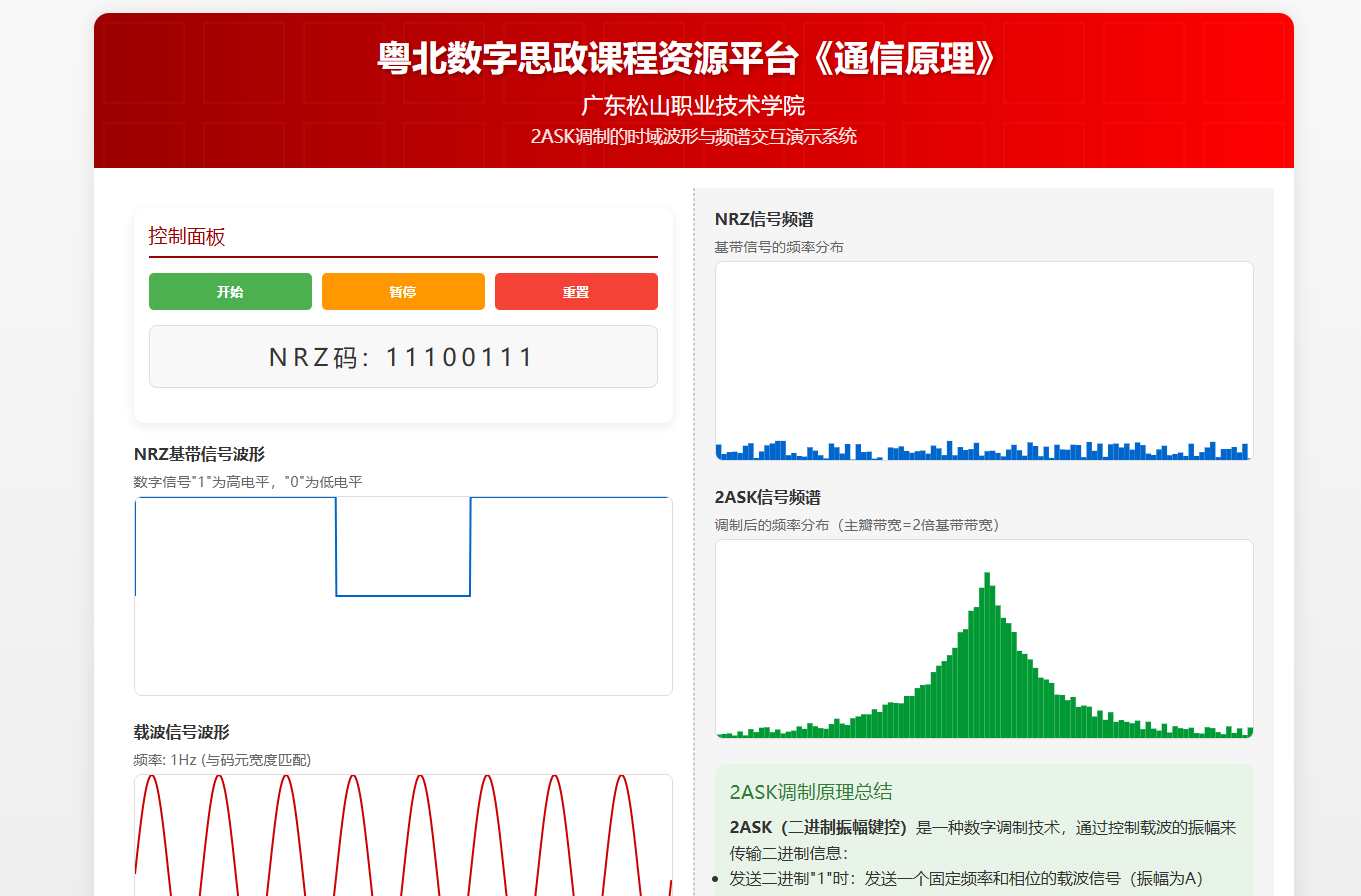 55、2ASK 调制在粤北红色无线通信中的时域波形与频谱交互演示系统