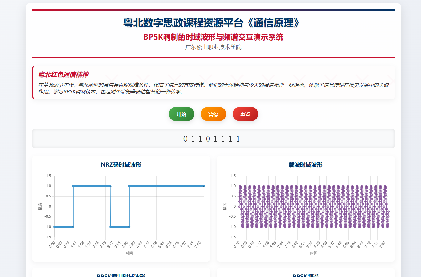 54、BPSK 调制在粤北红色短波通信中的时域波形与频谱交互演示系统